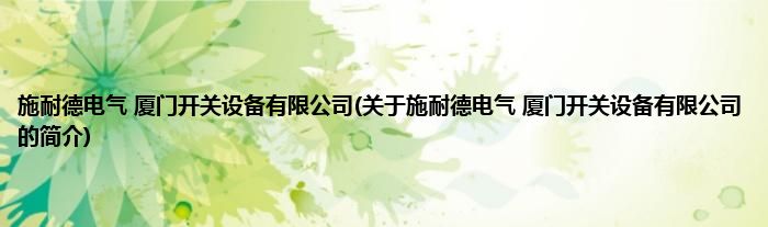 本文关于施耐德电气 厦门开关设备有限公司的简介就讲解完毕,希望对大家有所帮助。