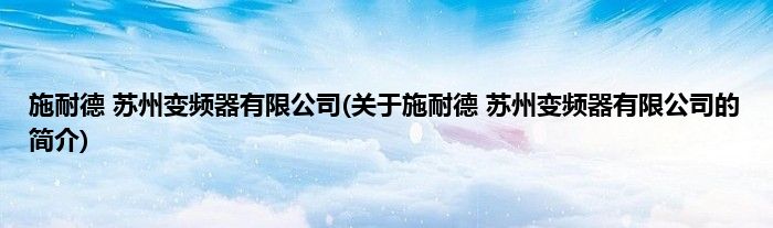 本文关于施耐德 苏州变频器有限公司的简介就讲解完毕,希望对大家有所帮助。