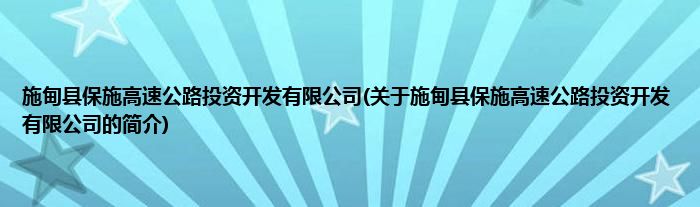本文关于施甸县保施高速公路投资开发有限公司的简介就讲解完毕,希望对大家有所帮助。