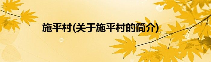 大家好,施平村,关于施平村的简介很多人还不知道,现在让我们一起来看看吧!