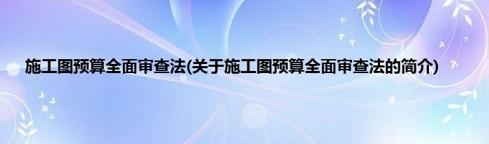 大家好,施工图预算全面审查法,关于施工图预算全面审查法的简介很多人还不知道,现在让我们一起来看看吧!
