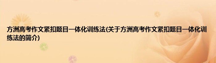 大家好,方洲高考作文紧扣题目一体化训练法,关于方洲高考作文紧扣题目一体化训练法的简介很多人还不知道,现在让我们一起来看看吧!