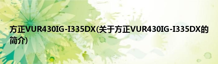 本文关于方正VUR430IG-I335DX的简介就讲解完毕,希望对大家有所帮助。