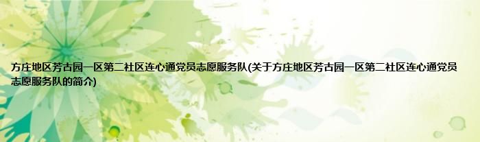 方庄地区芳古园一区第二社区连心通党员志愿服务队(关于方庄地区芳古园一区第二社区连心通党员志愿服务队的简介)