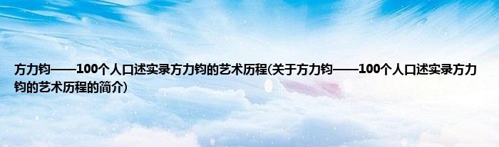 本文关于方力钧——100个人口述实录方力钧的艺术历程的简介就讲解完毕,希望对大家有所帮助。