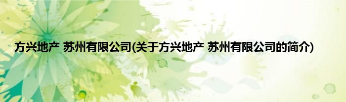 本文关于方兴地产 苏州有限公司的简介就讲解完毕,希望对大家有所帮助。