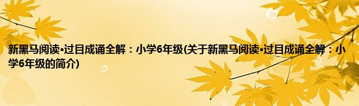 本文关于新黑马阅读·过目成诵全解:小学6年级的简介就讲解完毕,希望对大家有所帮助。