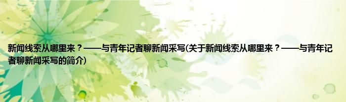 本文关于新闻线索从哪里来?——与青年记者聊新闻采写的简介就讲解完毕,希望对大家有所帮助。