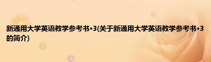 大家好,新通用大学英语教学参考书·3,关于新通用大学英语教学参考书·3的简介很多人还不知道,现在让我们一起来看看吧!