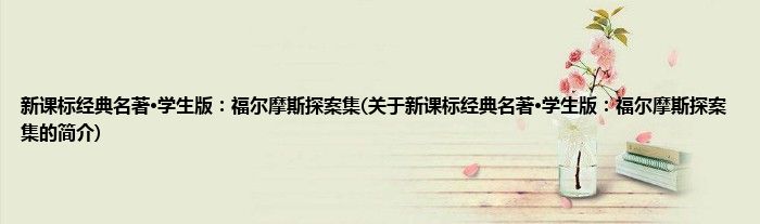 本文关于新课标经典名著·学生版:福尔摩斯探案集的简介就讲解完毕,希望对大家有所帮助。