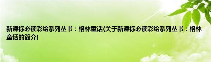 本文关于新课标必读彩绘系列丛书:格林童话的简介就讲解完毕,希望对大家有所帮助。