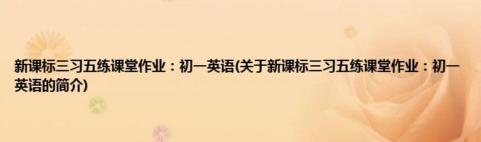 本文关于新课标三习五练课堂作业:初一英语的简介就讲解完毕,希望对大家有所帮助。