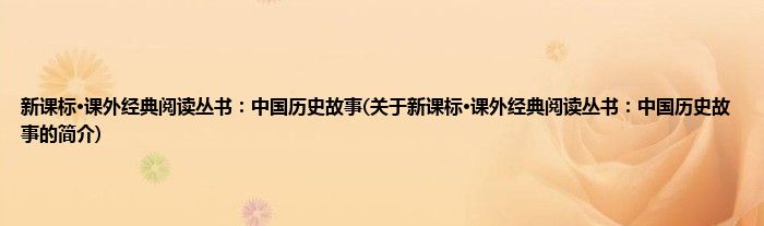2、《新课标·课外经典阅读丛书:中国历史故事》收录近百则中国著名的历史故事,适合学生阅读,编写较能体现历史典籍原著的精髓,内容浅显易懂,文字流畅易读,相信对学生的语文学习能够起到理想的辅助作用。