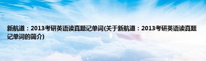 新航道:2013考研英语读真题记单词(关于新航道:2013考研英语读真题记单词的简介)