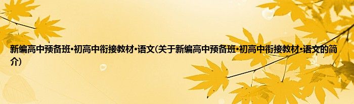 本文关于新编高中预备班·初高中衔接教材·语文的简介就讲解完毕,希望对大家有所帮助。