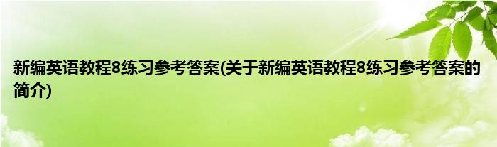 大家好,新编英语教程8练习参考答案,关于新编英语教程8练习参考答案的简介很多人还不知道,现在让我们一起来看看吧!