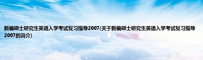 本文关于新编硕士研究生英语入学考试复习指导2007的简介就讲解完毕,希望对大家有所帮助。