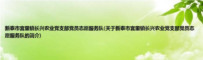 本文关于新泰市宫里镇长兴农业党支部党员志愿服务队的简介就讲解完毕,希望对大家有所帮助。