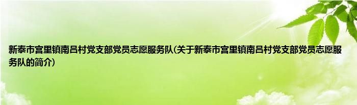 大家好,新泰市宫里镇南吕村党支部党员志愿服务队,关于新泰市宫里镇南吕村党支部党员志愿服务队的简介很多人还不知道,现在让我们一起来看看吧!
