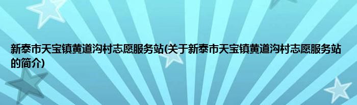本文关于新泰市天宝镇黄道沟村志愿服务站的简介就讲解完毕,希望对大家有所帮助。