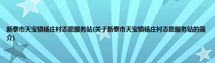 本文关于新泰市天宝镇杨庄村志愿服务站的简介就讲解完毕,希望对大家有所帮助。