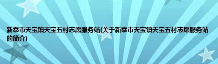 本文关于新泰市天宝镇天宝五村志愿服务站的简介就讲解完毕,希望对大家有所帮助。