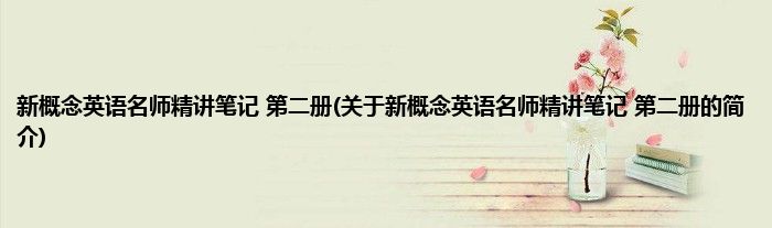 本文关于新概念英语名师精讲笔记 第二册的简介就讲解完毕,希望对大家有所帮助。