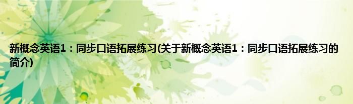 本文关于新概念英语1:同步口语拓展练习的简介就讲解完毕,希望对大家有所帮助。