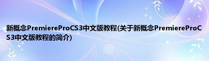 本文关于新概念PremiereProCS3中文版教程的简介就讲解完毕,希望对大家有所帮助。