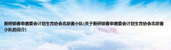 新桥镇春申居委会计划生育协会志愿者小队(关于新桥镇春申居委会计划生育协会志愿者小队的简介)