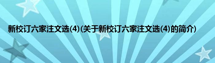 本文关于新校订六家注文选(4)的简介就讲解完毕,希望对大家有所帮助。