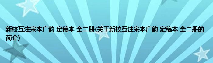 本文关于新校互注宋本广韵 定稿本 全二册的简介就讲解完毕,希望对大家有所帮助。