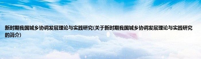 本文关于新时期我国城乡协调发展理论与实践研究的简介就讲解完毕,希望对大家有所帮助。