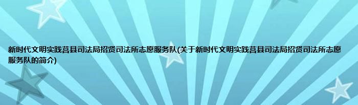 大家好,新时代文明实践莒县司法局招贤司法所志愿服务队,关于新时代文明实践莒县司法局招贤司法所志愿服务队的简介很多人还不知道,现在让我们一起来看看吧!