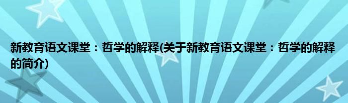 本文关于新教育语文课堂:哲学的解释的简介就讲解完毕,希望对大家有所帮助。