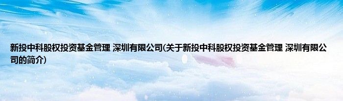 本文关于新投中科股权投资基金管理 深圳有限公司的简介就讲解完毕,希望对大家有所帮助。