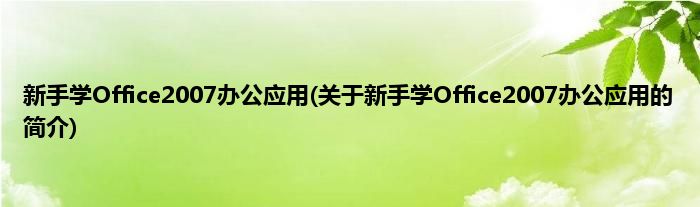 本文关于新手学Office2007办公应用的简介就讲解完毕,希望对大家有所帮助。