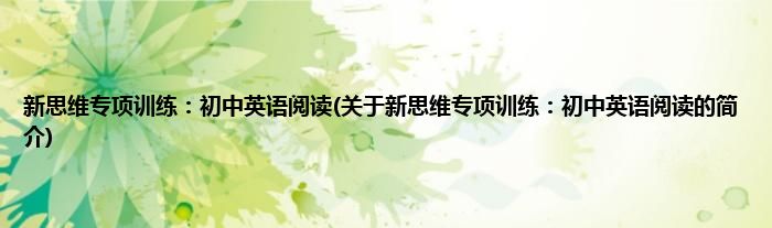 本文关于新思维专项训练:初中英语阅读的简介就讲解完毕,希望对大家有所帮助。