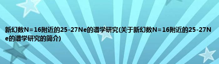 大家好,新幻数N=16附近的25-27Ne的谱学研究,关于新幻数N=16附近的25-27Ne的谱学研究的简介很多人还不知道,现在让我们一起来看看吧!
