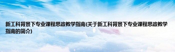 本文关于新工科背景下专业课程思政教学指南的简介就讲解完毕,希望对大家有所帮助。