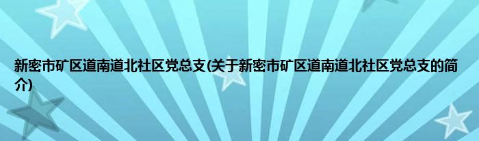 本文关于新密市矿区道南道北社区党总支的简介就讲解完毕,希望对大家有所帮助。