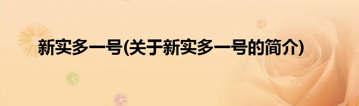 本文关于新实多一号的简介就讲解完毕,希望对大家有所帮助。