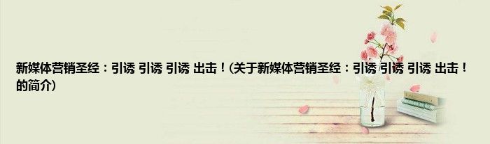 大家好,新媒体营销圣经:引诱,引诱,引诱,出击!,关于新媒体营销圣经:引诱,引诱,引诱,出击!的简介很多人还不知道,现在让我们一起来看看吧!