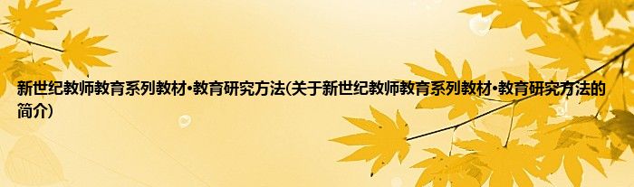 本文关于新世纪教师教育系列教材·教育研究方法的简介就讲解完毕,希望对大家有所帮助。