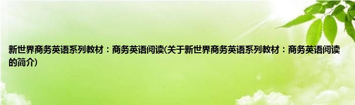 本文关于新世界商务英语系列教材:商务英语阅读的简介就讲解完毕,希望对大家有所帮助。