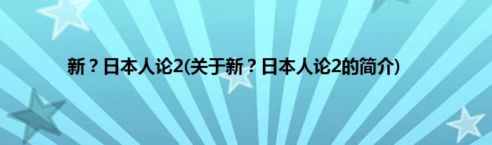 大家好,新?日本人论2,关于新?日本人论2的简介很多人还不知道,现在让我们一起来看看吧!