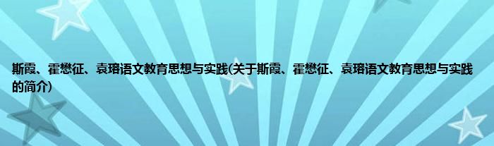 大家好,斯霞、霍懋征、袁瑢语文教育思想与实践,关于斯霞、霍懋征、袁瑢语文教育思想与实践的简介很多人还不知道,现在让我们一起来看看吧!