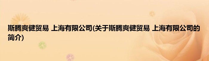 本文关于斯腾爽健贸易 上海有限公司的简介就讲解完毕,希望对大家有所帮助。