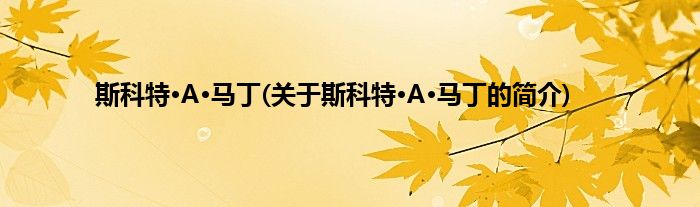 本文关于斯科特·A·马丁的简介就讲解完毕,希望对大家有所帮助。