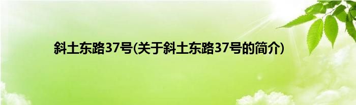 本文关于斜土东路37号的简介就讲解完毕,希望对大家有所帮助。